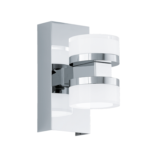 EGLOابليك مرايا ثنائي فضي كروم بزجاج اسطواني ابيض اوبال IP 44 بداويه E14 طول 46 سم